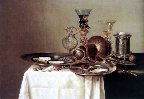 Stillleben mit Obstkuchen, Silberwasserkrug und Kr