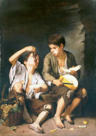 Trauben und Melonen essende Jungens